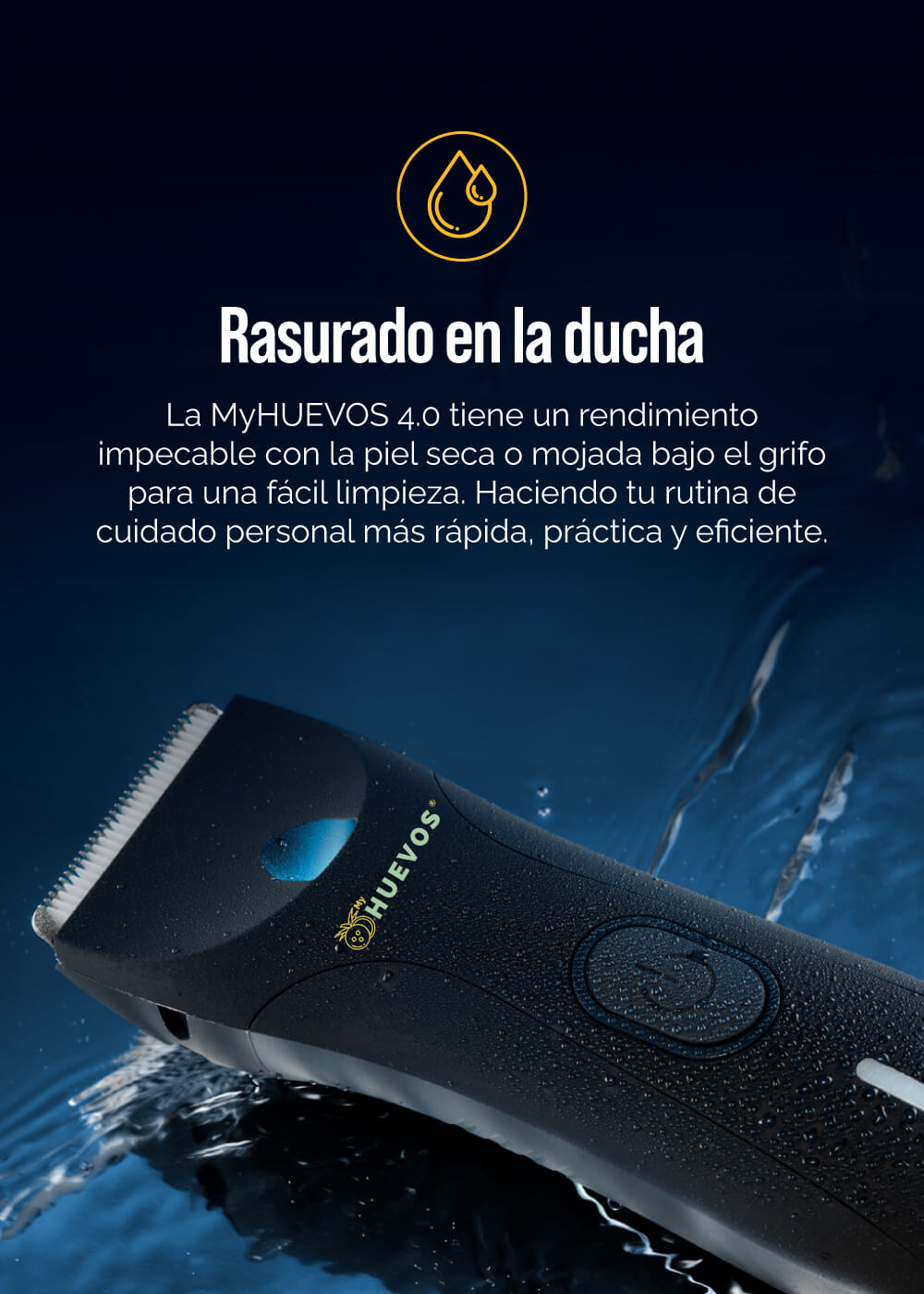 Sí, nuestra rasuradora intima masculina MyHUEVOS® 4.0 Pro es a prueba de agua y puede ser usada en la ducha o en la bañera sin preocupaciones.